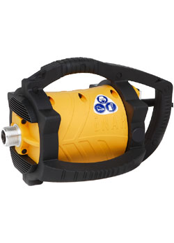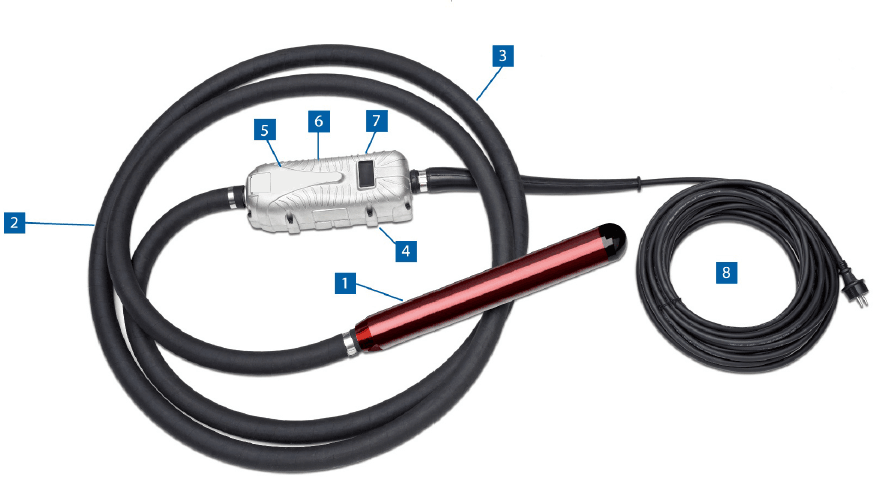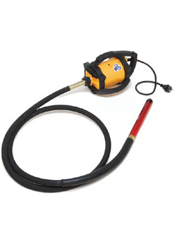 高频振捣棒也称高频振动棒,由电缆(带漏电保护器)、驱动器、(220V)橡胶管 、振动棒(内置电机)等部件组成。采用低压(安全电压42 V)高频(200Hz)电源,在插入式振动棒内直接内置微型马达拖动偏心块,产生振动频率高达12000次/分钟,极易和混凝土构件产生共振,使构件中气泡迅速排出,使水泥、沙石和钢筋框架紧密地联成一体,达到混凝土都建密实性,表面光洁度高